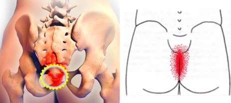 엉치뼈(천골) 밑에 위치해 있습니다.