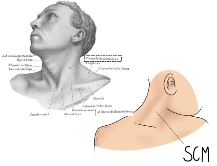 이때, 목이 우측으로 회전 시 반측 흉쇄유돌근은