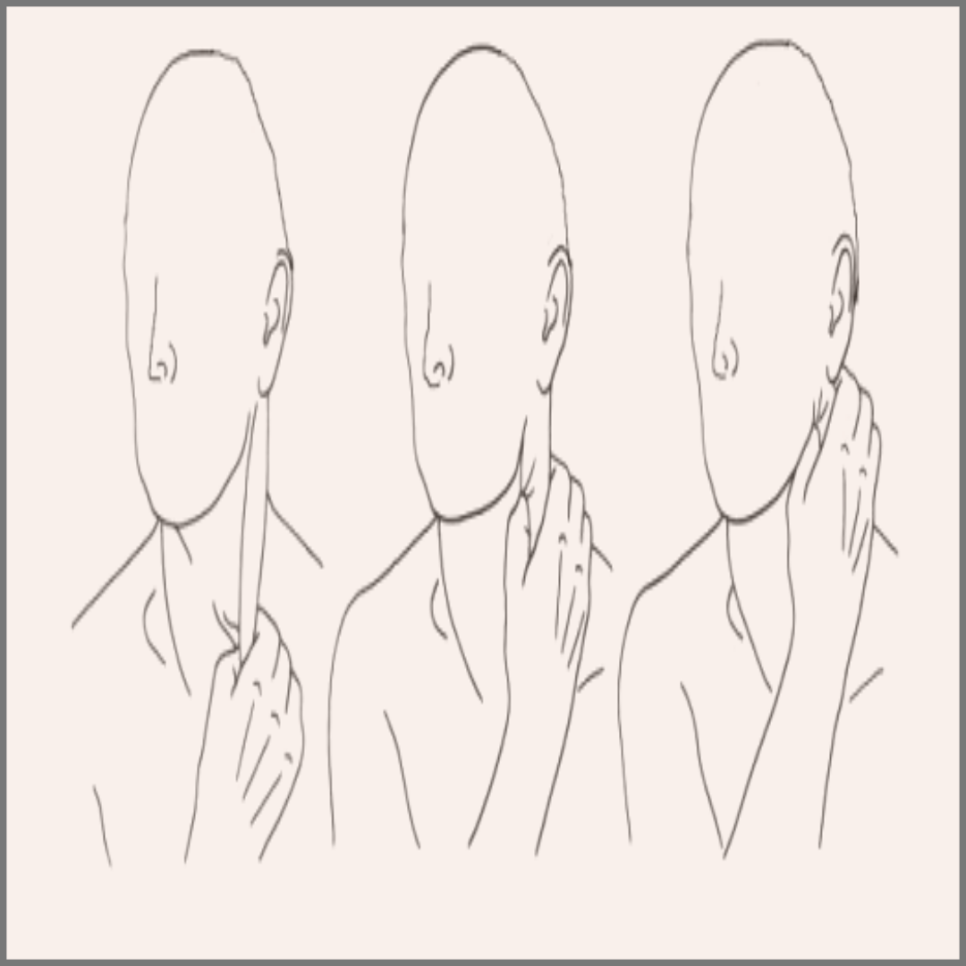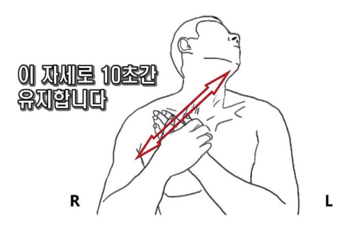 1. 목앞에 쇄골과 목 사이에 움푹한 곳에 손을 데어준다.
