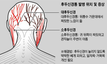 목 근육과 인대가 경직되면서 머리로 향하는 신경을 압박할 때 발생하는 두통입니다.