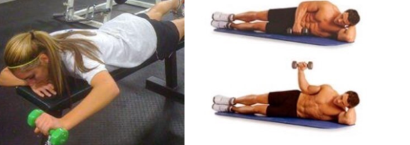 가벼운 아령을 이용해 천천히 움직이며, 역시 최대 수축 지점에서 10초간 유지합니다.