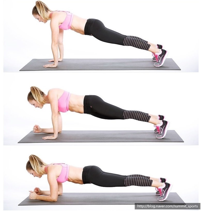 팔꿈치 플랭크 ↔ 기본 플랭크(팔 펴기)