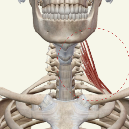 목 옆면에 위치하며 목과 늑골을 연결하는 근육.